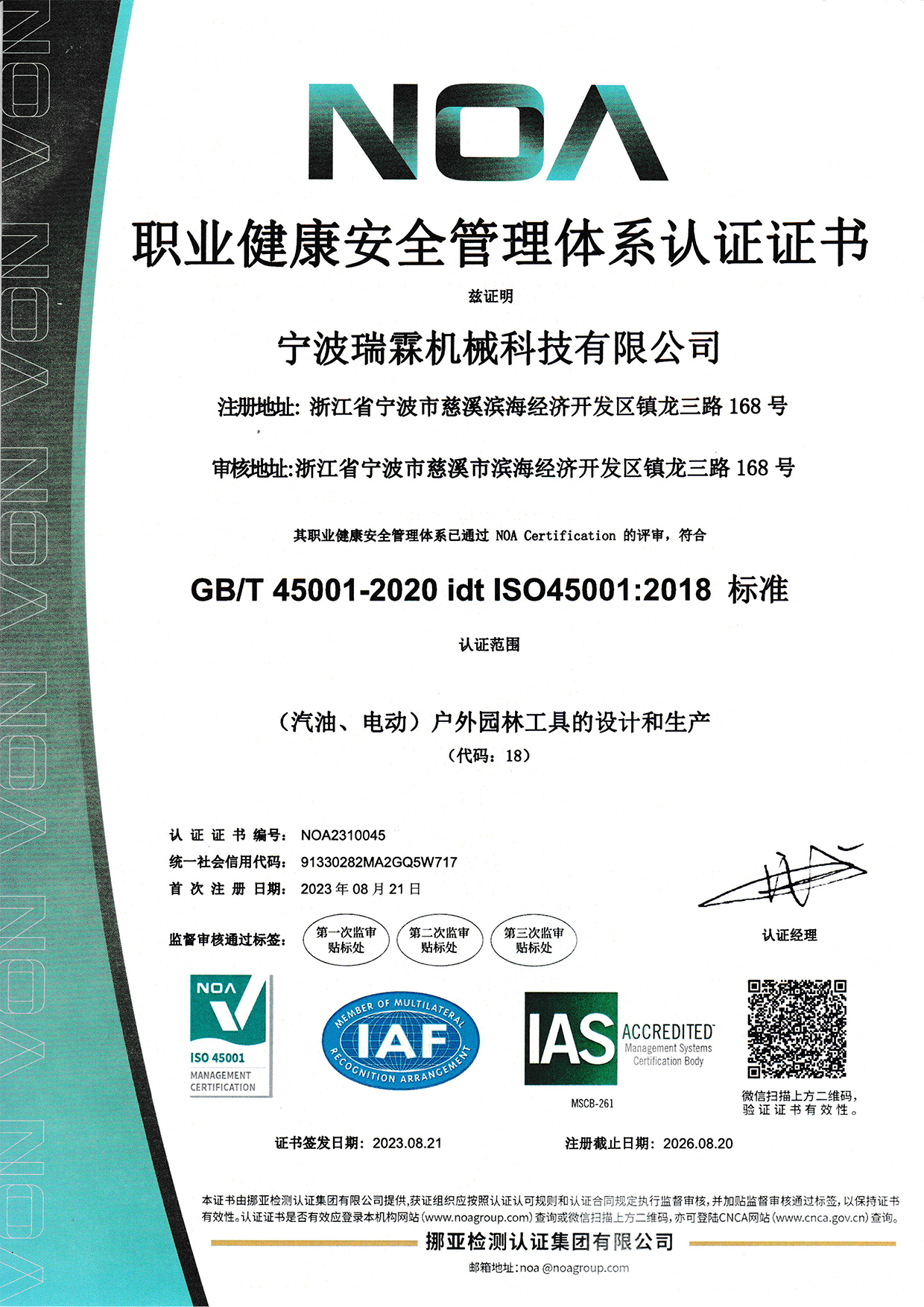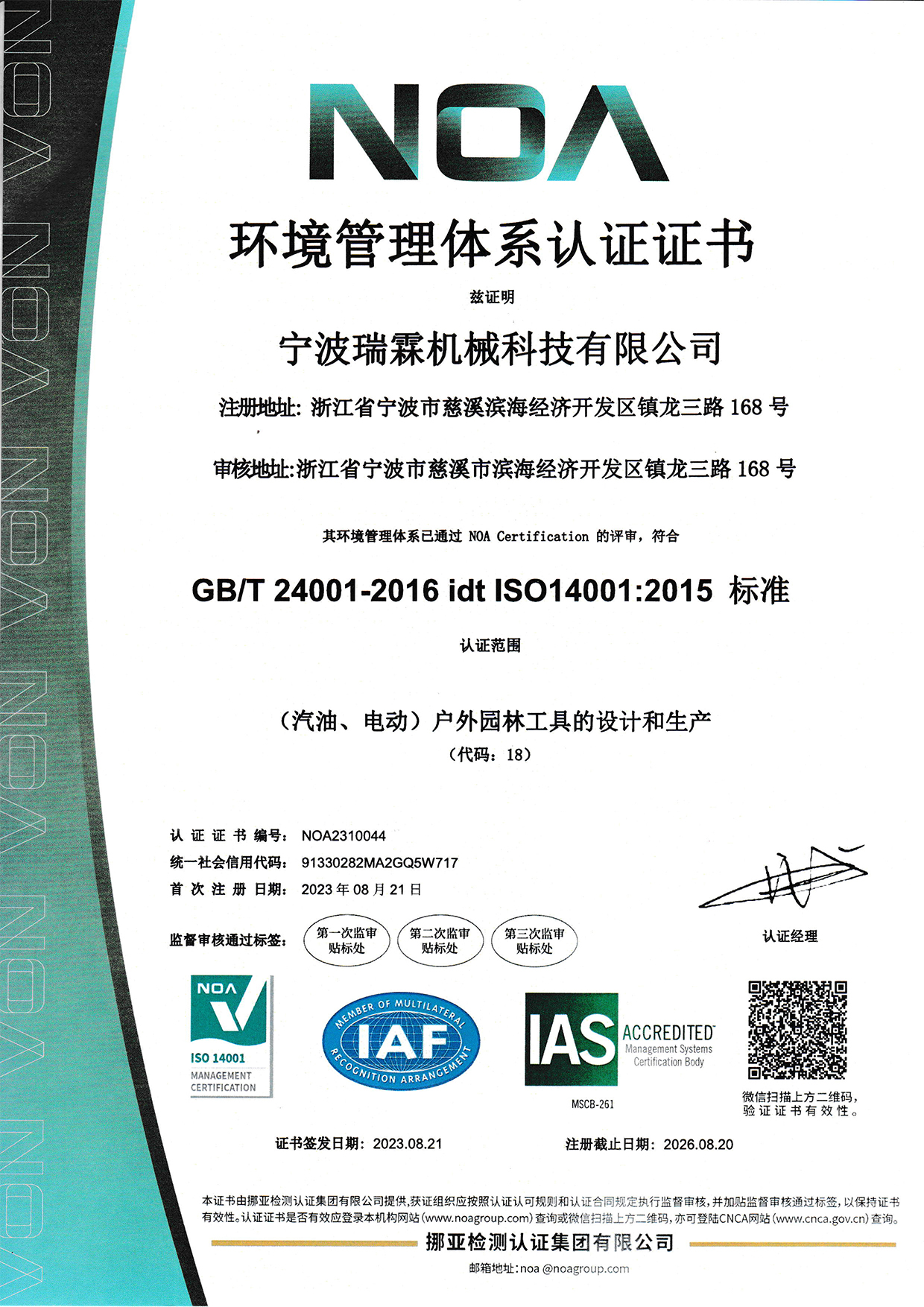 宁波瑞霖机械科技有限公司(简称NGP)是乐动网页版登录入口的全资子公司,成立于2019年4月,位于浙江省慈溪滨海经济开发区镇龙三路168号,占地面积约50000平方米。公司拥有雄厚的技术力量和先进的生产设备,是行业内规模最大的企业之一。NGP集产品设计、开发、生产、销售和服务于一体,主要从事各类汽油、割草机、修枝机、打草机、链锯、吹风机等园林工具的设计研发和制造,产品远销欧洲、美洲、大洋洲等多个国家和地区,同时内销全国各地。作为国家知识产权优势企业,公司注重产品设计,并在此基础上采用先进的精益生产方式,以7S活动规范现场管理,以量身打造的ERP系统整合及有效利用企业资源,以ISO 9001:2015等标准来完善公司质量管理体系,并通过“GS”、“EMC”、“CE”、“UL”等认证来确保产品的安全性和可靠性,已取得各地区出口许可证和自营进出口权。